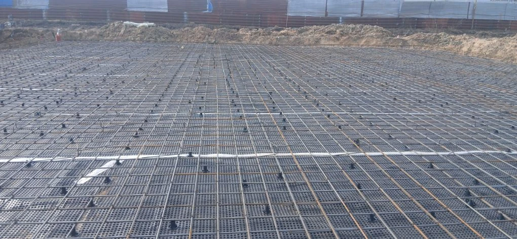 Специалисты РСК НеваСпецСтрой завершили армирование плиты фундамента для склада 1200 кв.м. Бетонирование ( с топпингом Мастер-топ 450 ) произведём в среду 24.09.2025.