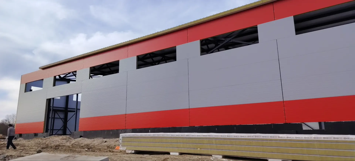 Мы начали с подготовки стройплощадки и устройства временных дорог. Далее изготовили фундамент здания ( ФМ и цоколь ) , далее были смонтарованы металлокаркас и сэндвич-панели. 21.04.206 г начинаем устройство ЖБ плиты здания ( 1440 м2 ).